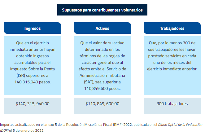 En el caso de los contribuyentes que quieran ser voluntarios, de acuerdo con la legislación fiscal vigente: pueden optar por dictaminar sus estados financieros para efectos fiscales en 2022, las personas físicas con actividad empresarial o las personas morales que se encuentran en cualquiera de los siguientes supuestos: